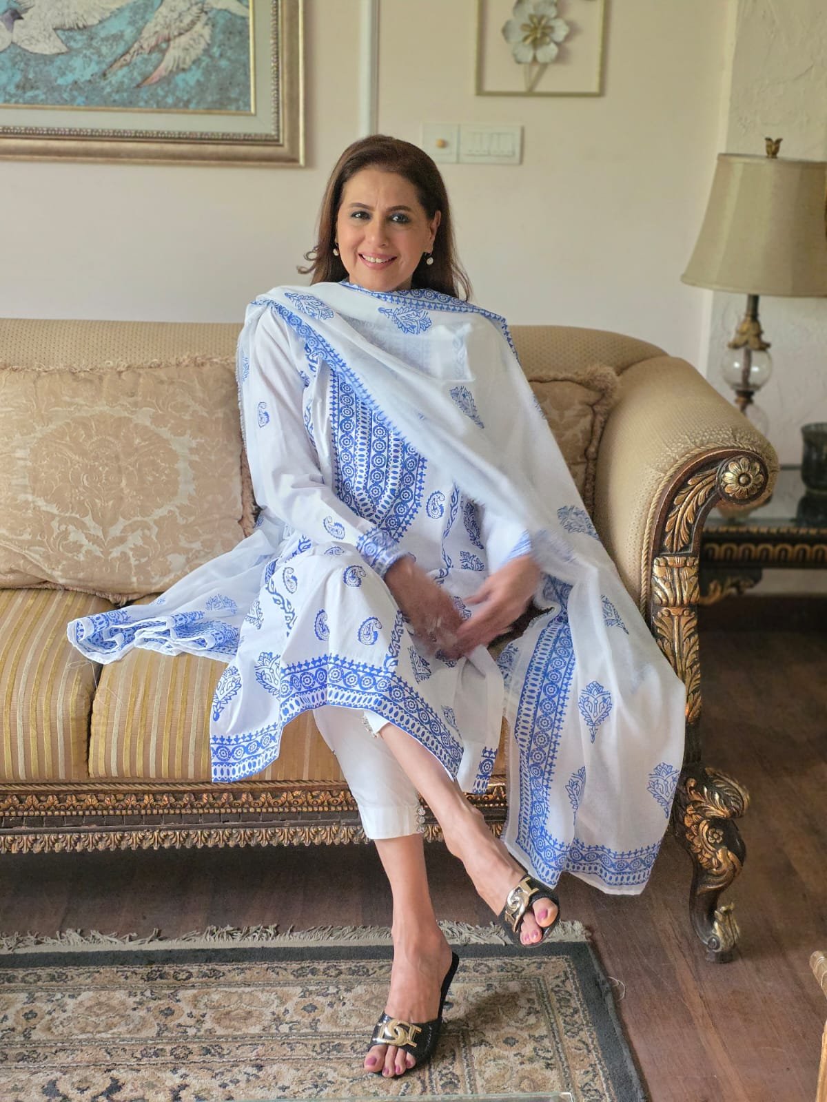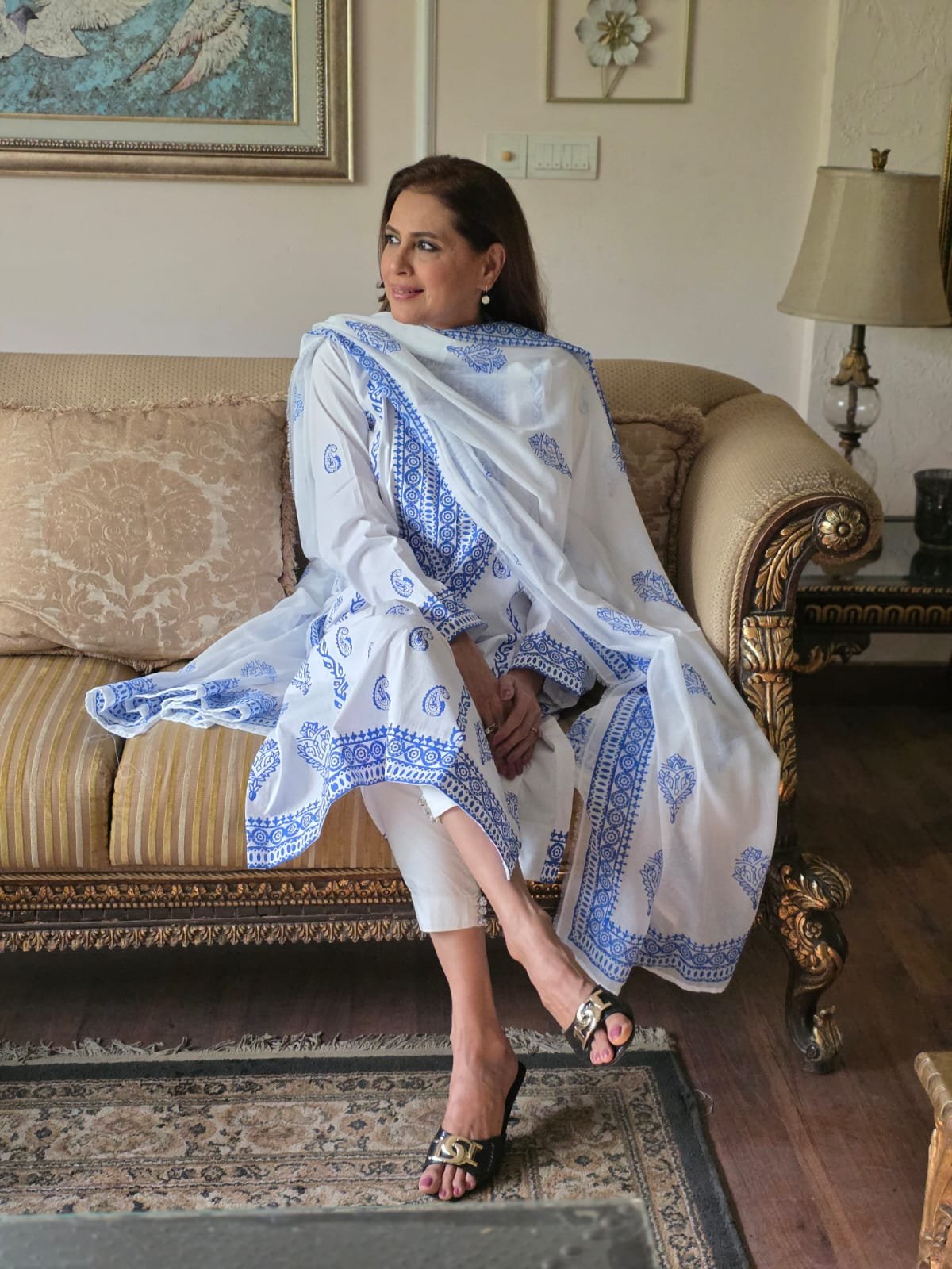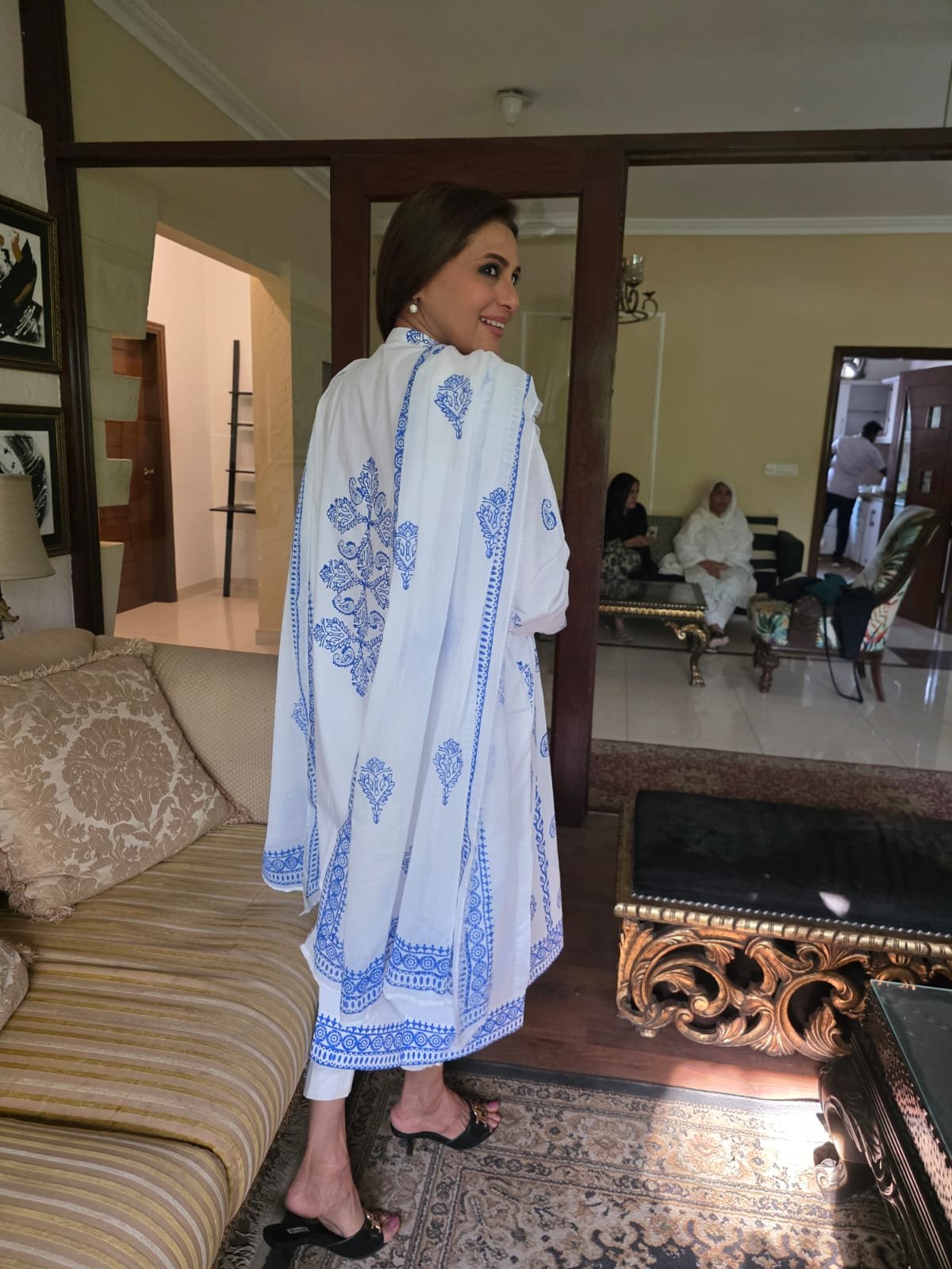 The ultimate look in daisy white and blue. Paired with dupatta.